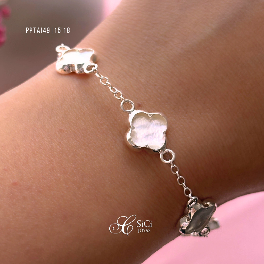 Pulsera con trébol nácar intercalado